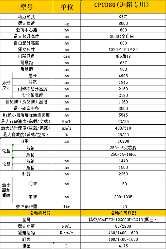CPCD80进箱专用叉车